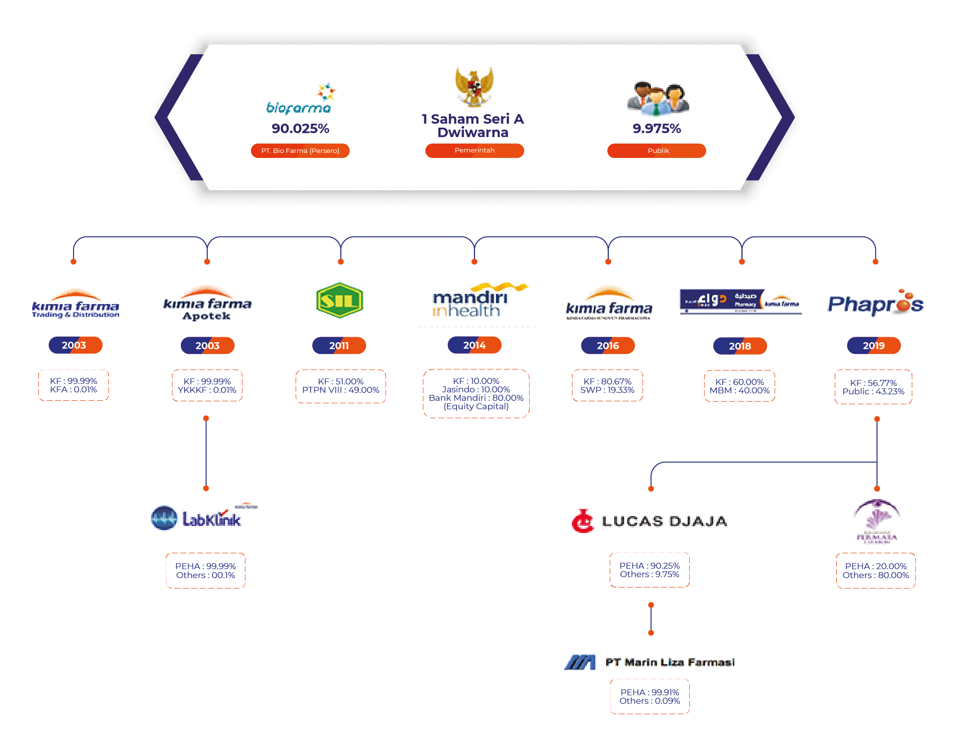 Kimia Farma Group has modern pharmaceutical manufacturing facilities supported by Research and Development to produce pharmaceutical items, drugs, and other healthcare products. In order to run its business, Kimia Farma Group is supported by a marketing & distribution system through a network of pharmaceutical wholesalers, pharmacy retailers, optics, clinics, and clinical laboratories.